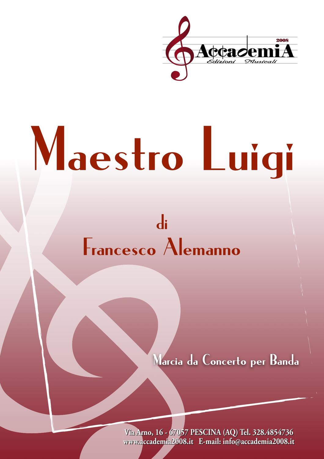 MAESTRO LUIGI - Francesco Alemanno Brano originale per Banda Parti e partitura in pdf | € 20,00 Cartaceo | € 40,00 €20,00 20,00 Acquista Marcia da Concerto per Orchestra di fiati
